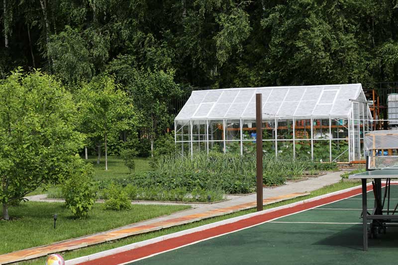 Дочь владельцев участка оказалась увлеченным огородником. На участке был разбит плодовый сад, высажены плодовые кустарники, виноград, построены просторные теплицы и заложен большой огород, где семья выращивает экологически чистые клубнику, овощи, зелень и даже арбузы.